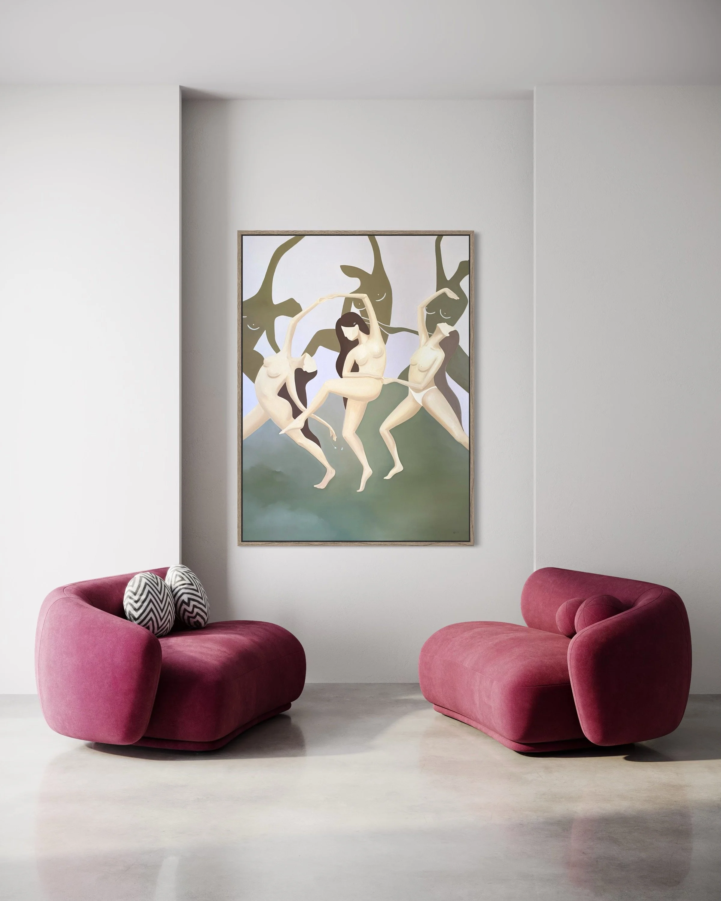 is my painting series of naked women exploring the topic of freedom. Kunigunda, an ancient Germanic name meaning “warrior of the clan,” carries the spirit of unity, resilience, and shared strength. These paintings long the deep bonds of sisterhood, the quest for emancipation, the raw beauty of the female form, and a return to the sacred rhythm of ancient times and homeland.